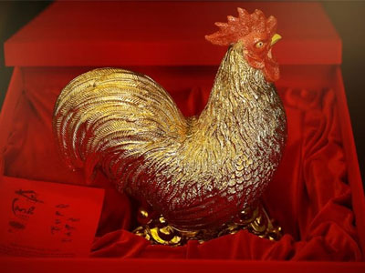 Vật phẩm Gà vàng Kỳ Linh Đinh Dậu 2017, được chế tác hết sức tinh xảo, sẽ là món quà độc đáo, ý nghĩa trong dịp năm mới.