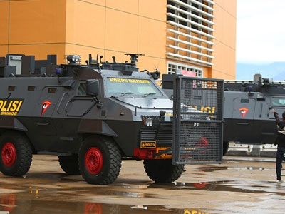 Ngoài các lượng lượng an ninh, chủ nhà Indonesia còn huy động nhiều xe quân sự đến sân Pakansari để đảm bảo an ninh cho bán kết lượt đi AFF Suzuki Cup 2016
