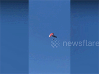 Khoảnh khắc đáng sợ khi hai chiếc dù lượn bị vướng vào nhau giữa không trung khiến những người có mặt chứng kiến sự việc được một phen lo lắng.