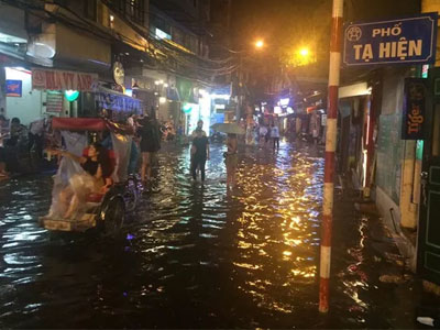 Phố cổ Hà Nội ngập lênh láng sau cơn mưa lớn
