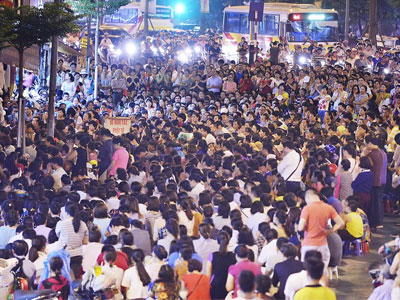 Biển người đội mưa dự lễ Vu lan ngoài đường