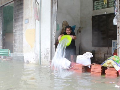 Nhà ngập sau bão, người dân Hà Nội be bờ, tát nước