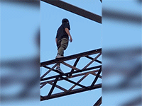 Sốc với cảnh tượng nam thanh niên đứng trên đỉnh cầu Long Biên