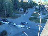 Nam cảnh sát 23 tuổi đang lái xe với tốc độ cao đến hiện trường một vụ tai nạn thì mất lái và tông vào ít nhất 3 chiếc ô tô đang đỗ trước một cửa hàng.