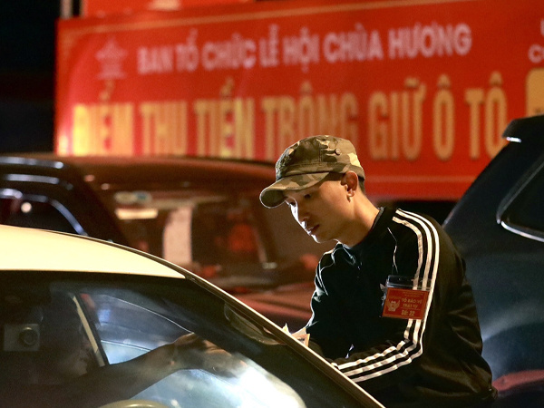 Do lượng khách đến chùa Hương (Mỹ Đức, Hà Nội) đông đúc, hàng nghìn người bị ùn ứ, mất nhiều giờ mới thoát khỏi bãi gửi xe, tối mùng 4 Tết.