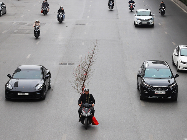 Đường phố Hà Nội vào chiều 30 Tết vắng vẻ khác lạ so với ngày thường, không còn cảnh hàng dài phương tiện ùn ứ hay xe máy phải len lỏi giữa hàng ô tô.