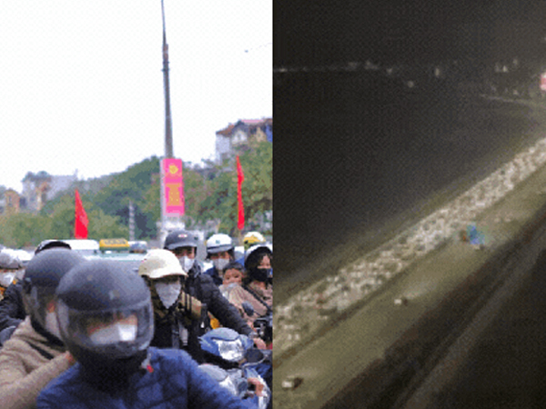 Do lượng khách đến chùa Hương (Mỹ Đức, Hà Nội) đông đúc, hàng nghìn người bị ùn ứ, mất nhiều giờ mới thoát khỏi bãi gửi xe, tối mùng 4 Tết.