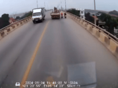 Bức xúc: Xe tải tạt đầu khiến 2 xe máy ngã dúi dụi rồi tăng ga bỏ đi