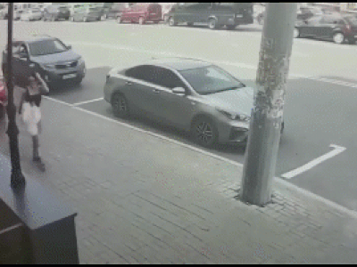 Chiếc xe ô tô màu đỏ bất ngờ lao lên vỉa hè, tăng tốc rồi đâm gục người phụ nữ đang đi bộ. Chiếc xe ô tô màu đỏ bất ngờ lao lên vỉa hè, tăng tốc rồi đâm gục người phụ nữ đang đi bộ.