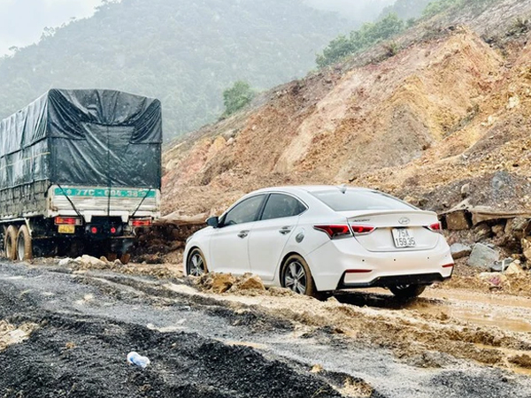 Do mưa lớn, liên tục, tại Km46+300 trên tuyến đường cao tốc La Sơn - Túy Loan (nối Đà Nẵng và TT-Huế) xảy ra sạt lở nghiêm trọng với khối lượng bùn đất lớn.
