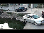 Trong lúc lùi xe, người phụ nữ vô tình nhầm chân ga nên đã để cô cùng con của mình rơi xuống mương nước gần đó.