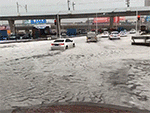 Đường phố biến thành sông sau cơn mưa đá khiến hàng loạt xe hơi 'chôn chân'