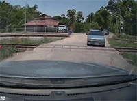 Một đoàn tàu hỏa đang lưu thông ở một tỉnh miền Trung Thái Lan đã suýt đâm phải chiếc ô tô con khi phương tiện này đã phớt lờ cảnh báo đèn cũng như chiếc barie để cố băng qua đường tàu.
