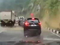 Tảng đá khổng lồ đè nát ôtô dưới chân núi sau trận lở đất