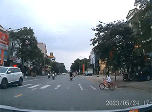 Bé gái đạp xe sang đường như chỗ không người khiến tài xế phanh xe 'dúi dụi'