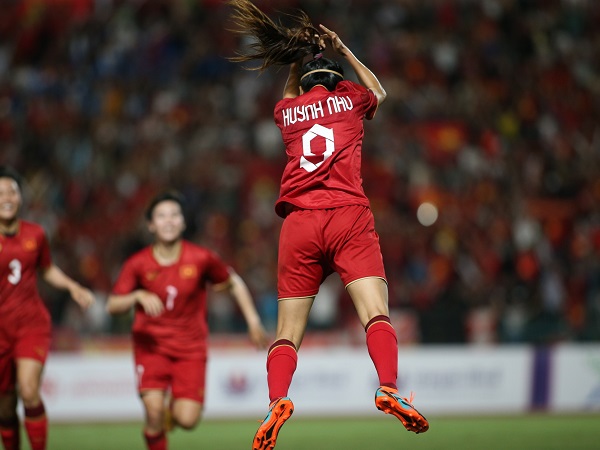 Tiền đạo Huỳnh Như mở tỷ số cho tuyển nữ Việt Nam trong trận chung kết SEA Games 32 gặp Myanmar. Cô ăn mừng bàn thắng theo phong cách đặc biệt.