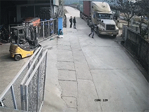 Hai thanh niên hốt hoảng bỏ chạy khi tiệm sửa điện lạnh bất ngờ sập sàn