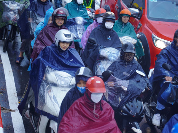 Nhiệt độ tại Hà Nội sáng sớm nay (20.10) chỉ ở mức 17 độ C kèm mưa, khiến việc đi lại của người dân trong giờ cao điểm gặp khó khăn, cảnh ùn tắc diễn ra trên nhiều tuyến đường.