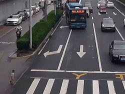 Thấy đứa trẻ sắp lao ra đường rất nguy hiểm, tài xế xe buýt vội ra dấu hiệu khẩn cấp cho các xe đi bên cạnh giảm tốc độ. Tuy nhiên vụ việc cũng khiến những người đi đường được một phen hoảng sợ.
