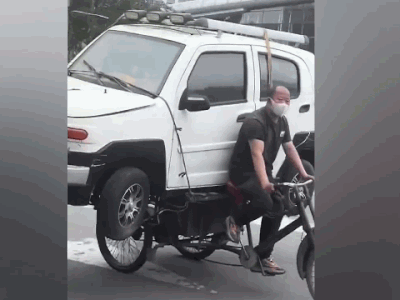 Video: Hài hước người đàn ông dùng xe 3 bánh chở ô tô bon bon trên phố