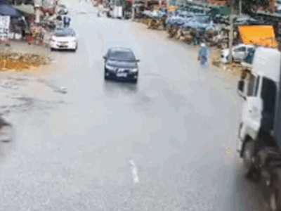 Video: Hốt hoảng cảnh nam thanh niên phóng bạt mạng qua ngã tư, lao thẳng vào hông container