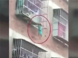 Clip: Trượt chân, bé trai 4 tuổi bị treo lơ lửng ngoài "chuồng cọp"