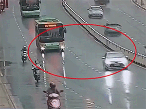 Cú ngã xe máy tai hại và pha đánh lái 'thần sầu' của tài xế xe buýt khiến ai cũng nể phục