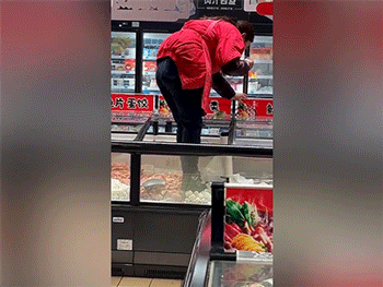 Hãi hùng cảnh nhân viên siêu thị đi cả giày vào trong tủ đông lạnh thực phẩm