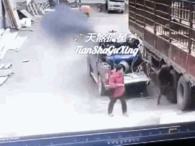 Chiếc lốp ô tô bất ngờ phát nổ kinh hoàng khiến người thợ sửa chữa bị hất văng ra xa vài mét.