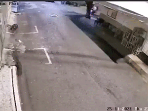 Đoạn camera an ninh của một nhà dân chỉ vọn vẹn 20 giây nhưng ghi lại khoảng khắc liều lĩnh và manh động của cặp đôi thanh niên khi bị lực lượng chức năng truy đuổi. Rất may khi quay xe bỏ trốn, đối tượng đã không gây ra hậu quả nghiêm trọng cho hai chiến sĩ CSGT