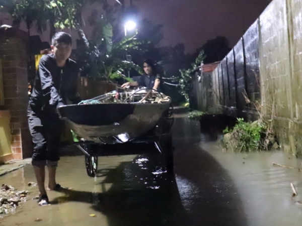 Mưa lớn kéo dài, mực nước sông lên nhanh gây ngập lụt nhiều nơi tại tỉnh Quảng Bình. Trong đêm, người dân huyện Lệ Thủy, di dời tài sản, phương tiện đến nơi cao ráo để chạy lũ khi nước sông Kiến Giang đang lên nhanh.