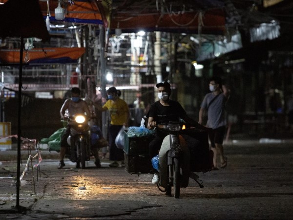 Tiểu thương chợ Phùng Khoang hối hả thu dọn hàng trong đêm sau khi một phụ nữ bán rau dương tính SARS-CoV-2