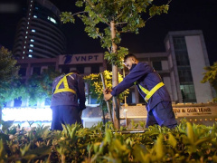 Ảnh: Di dời hàng cây phong lá đỏ trên 2 tuyến phố Hà Nội ngay trong đêm