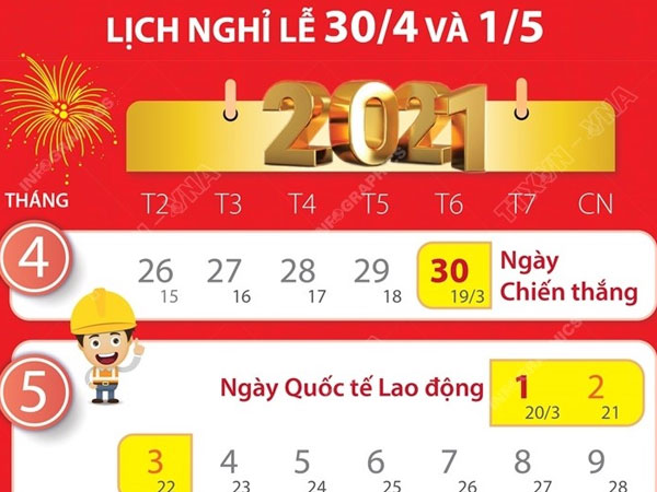 Trang 510Chi tiết lịch nghỉ lễ 30/4 và 1/5/2021