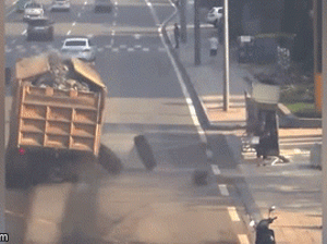 Video: Hãi hùng xe tải đang đi rơi 3 lốp, văng lên vỉa hè đập trúng người đi bộ