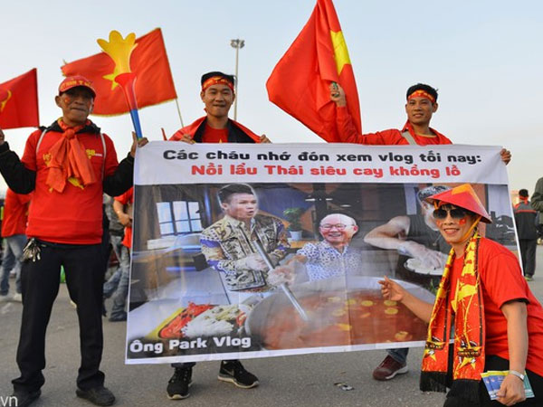 Trang 654CĐV Việt Nam thân thiện chụp hình chung CĐV Thái Lan trước sân Mỹ Đình