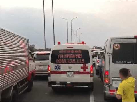 Trong lúc kẹt xe trên cao tốc Long Thành - Dầu Giây, hàng trăm tài xế đã chủ động đánh lái, mở đường cho xe cứu thương đi qua.