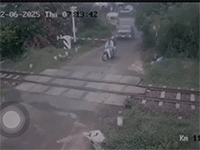 Khoảnh khắc 2 người đi xe máy vượt rào chắn bị tàu khách từ Hà Nội tông tử vong