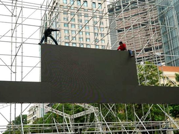 Các màn hình led được lắp tại phố đi bộ Nguyễn Huệ, phục vụ khán giả xem trận Việt Nam - Thái Lan tại King's Cup 2019.
