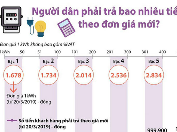 (Infographic) Người dân phải trả bao nhiêu tiền điện theo đơn giá mới?