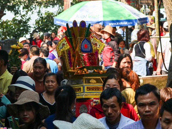 Người người đội mâm lễ vào đền ông Hoàng Mười