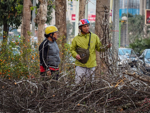 Đào quất vứt ngập phố, người dân thoải mái nhặt về chơi Tết