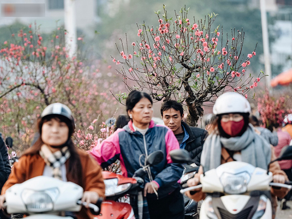 Vườn đào Nhật Tân nhộn nhịp ngày giáp Tết, đường tắc từ làng ra phố