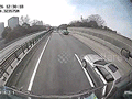 Dù khoảng trống phía trước là rất hẹp, nhưng môt tài xế điều khiển chiếc BMW vẫn cố tình lao lên và tạt đầu chiếc xe tải cỡ lớn để rồi phải nhận những giây phút kinh hoàng sau đó.