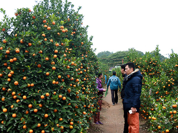 Mặc thời tiết lạnh giá và còn nửa tháng nữa mới đến Tết Nguyên đán, nhưng ở nhiều vườn quất cảnh đã nhộn nhịp khung cảnh khách đến chọn mua quất, những chuyến xe chở quất hối hả chạy đi.
