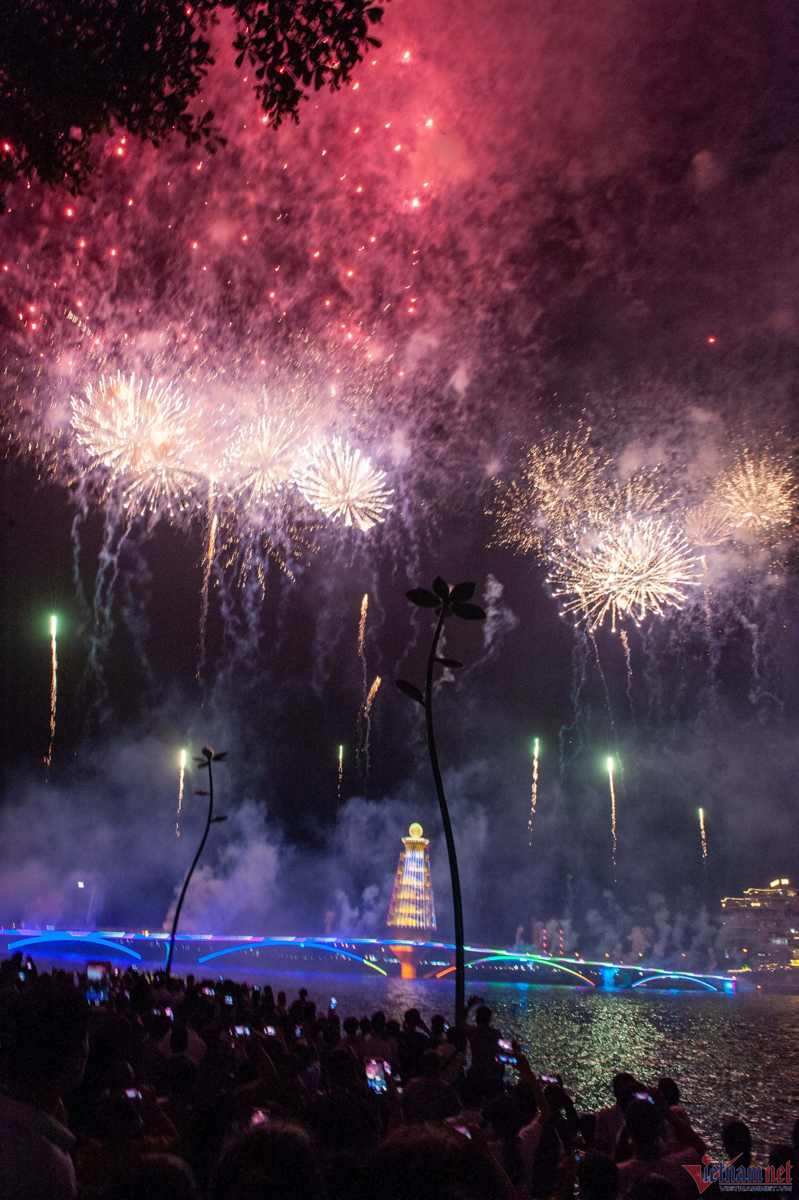 Nằm trong chuỗi các hoạt động của Lễ hội Đền Hùng và Tuần Văn hoá - Du lịch Đất Tổ năm 2023, tối 28/4, tại cầu đi bộ hồ công viên Văn Lang, TP. Việt Trì, Phú Thọ đã diễn ra màn bắn pháo hoa rực rỡ thu hút hàng nghìn người theo dõi.
