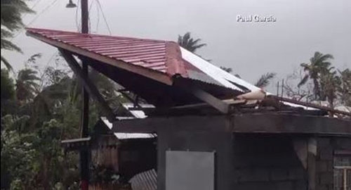 Sáng 18/10, bão Koppu di chuyển với tốc độ chậm rồi đổ bộ vào thị trấn Casiguran thuộc đảo Luzon gây mưa lớn. Sức gió giật lên tới 240 km/h tạo sóng biển cao 4 m. Ít nhất 10.000 người phải sơ tán. Mái tôn của một nhà dân bị bão thổi bay. Ảnh: CNN |