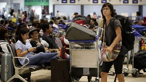 Hành khách mắc kẹt tại sân bay do nhiều chuyến bay bị hủy. Ảnh: EPA |