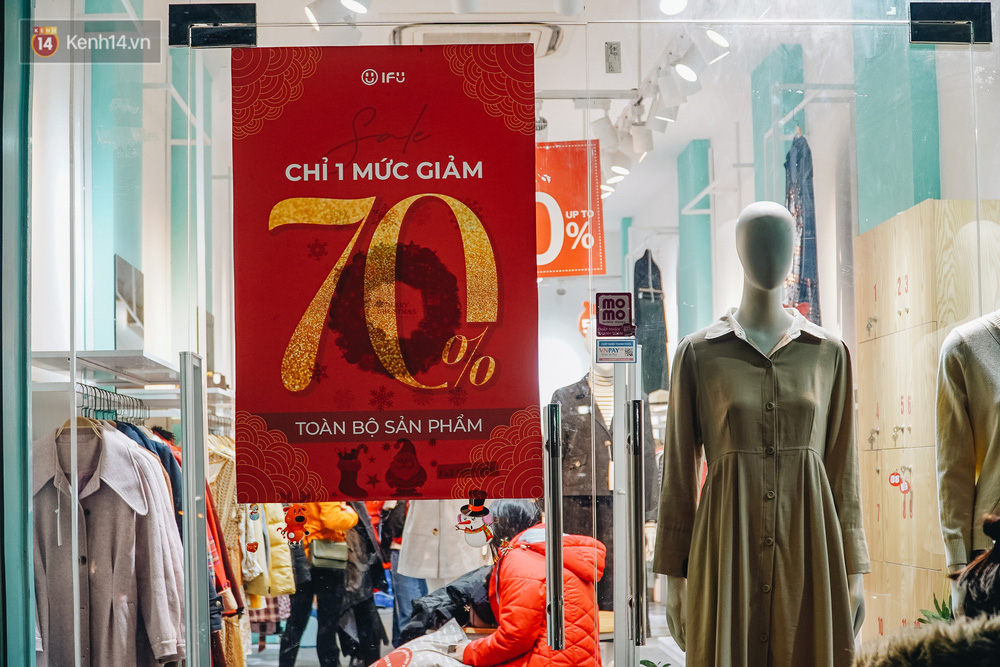 Các cửa hàng trên địa bàn phố Chùa Bộc (quận Đống Đa, Hà Nội) - nơi được mệnh danh là "thiên đường mua sắm", đồng loạt tung sale khủng từ các mức 30%-50%, thậm chí là 70%. Hàng ngàn người dân chen chân mua sắm vào đúng giờ cao điểm, dựng xe máy tràn xuống lòng đường gây ùn tắc cả dãy phố.