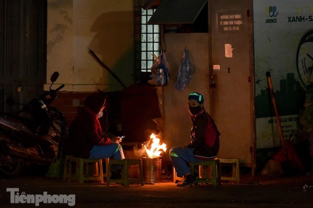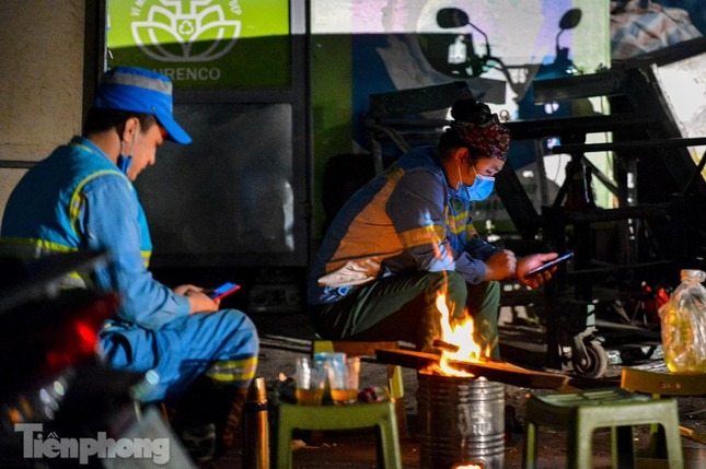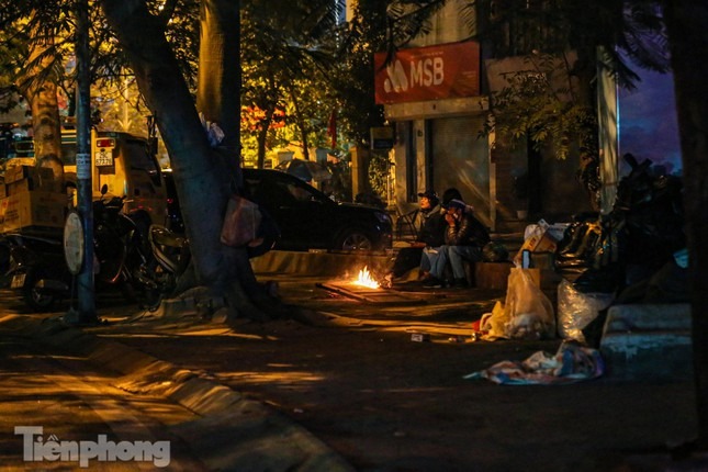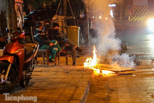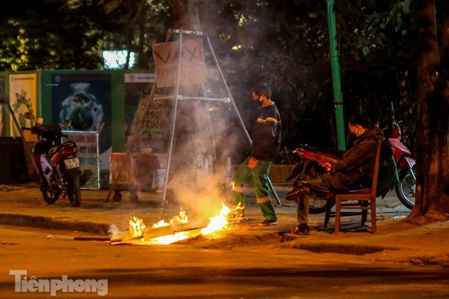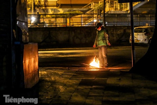 Đêm Hà Nội, nhiệt độ hạ xuống thấp nhất, khoảng 11 độ C. Trong cái rét tê tái, nhiều người dân Hà Nội nhóm lửa trên vỉa hè để sưởi ấm.